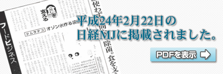 ●塩素や薬品を使わず殺菌、脱臭します。また使用後は酸素と水に分解しますので、まったく残留性がありません。